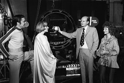 Na Thunderbirds is er nog Captain Scarlet, Joe 90, UFO en The Protectors. De laatste serie die ze samen hebben bedacht en gemaakt was Space: 1999. Hier een foto op de set met v.l.n.r. Martin Landau, Barbara Bain, Gerry Anderson en Sylvia Anderson (1975).