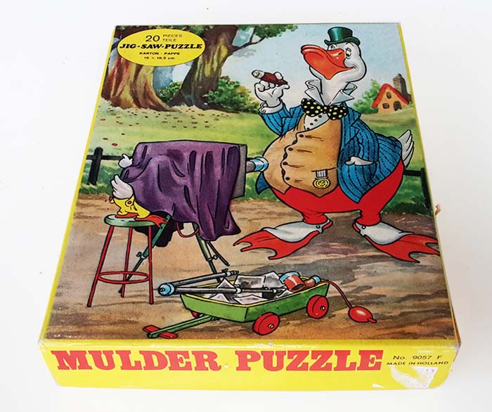 Deze puzzels (als de foto's hierboven) staan voor het eerst in de Mulder Katalogus van 1972. Het betreft serie 9057 met 12 verschillende dessins (A t/m L). Ik kan een scan mailen van de betreffende pagina uit de folder, maar dan heb ik een mailadres nodig.