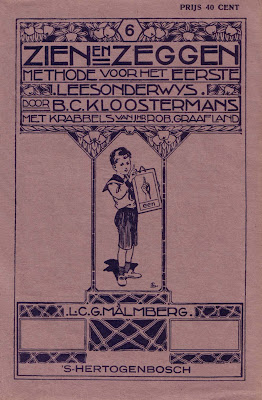 Een uitgewerkte omslag voor een leesboekje uit de methode voor het eerste leesonderwijs, geschreven door B.C. Kloostermans met krabbels van Rob Graafland. Bij krabbels denk ik aan kleine, niet uitgewerkte tekeningetjes. De omslag laat al meer zien, maar ook IN het boek zijn de (vele) tekeningen aardig uitgewerkt. Kwa sfeer lijken ze enigszins op vergelijkbare tekeningen van B. Reith, maar dan iets ruwer getekend.